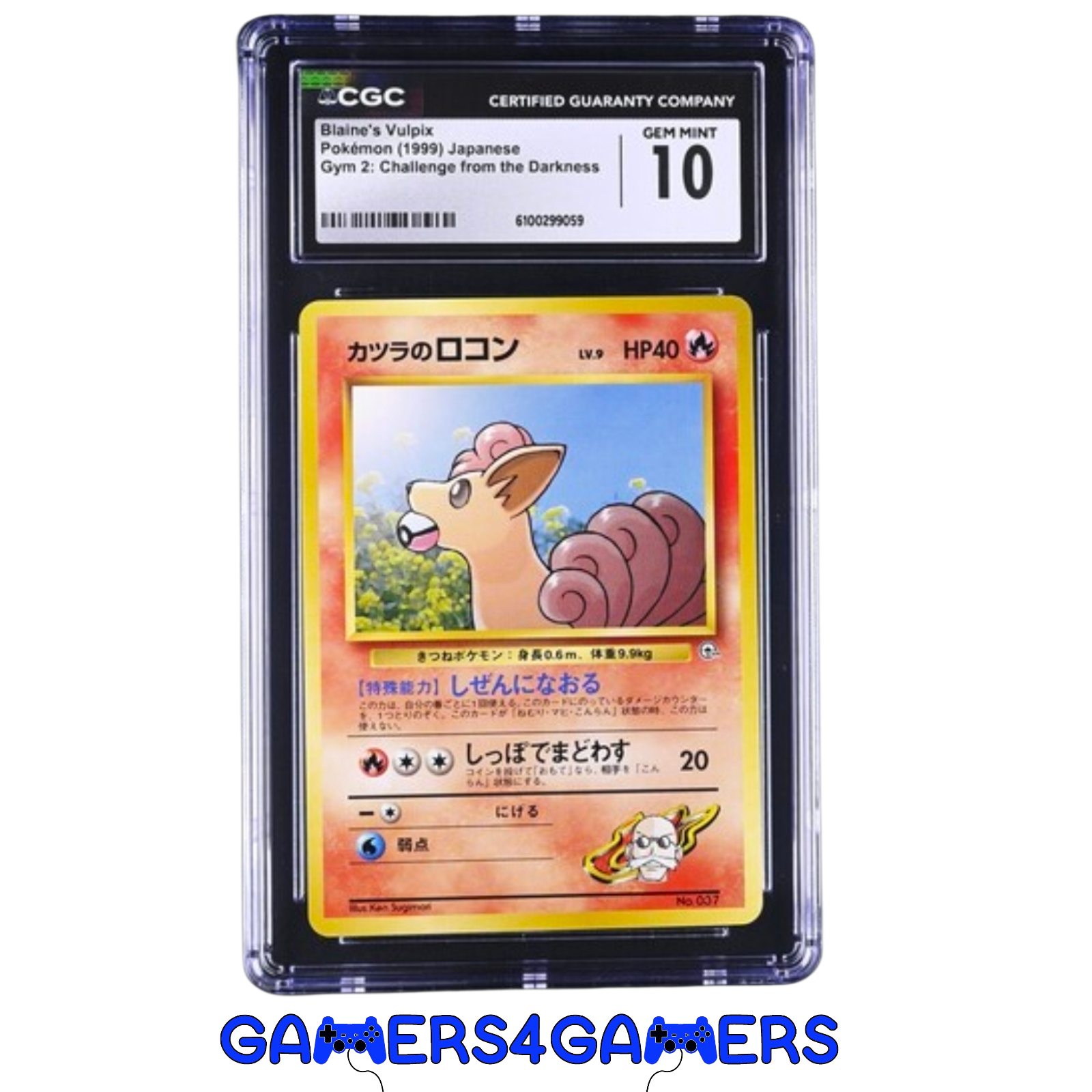 Blaine’s Vulpix 037 Pokemon Card is from the Gym 2: Challege From the Darkness Japanese set. You can add one to your collection today. One of the gen 1 pokemon. This is a must have collectors piece and, a beautiful addition to any collection. (POP 22)