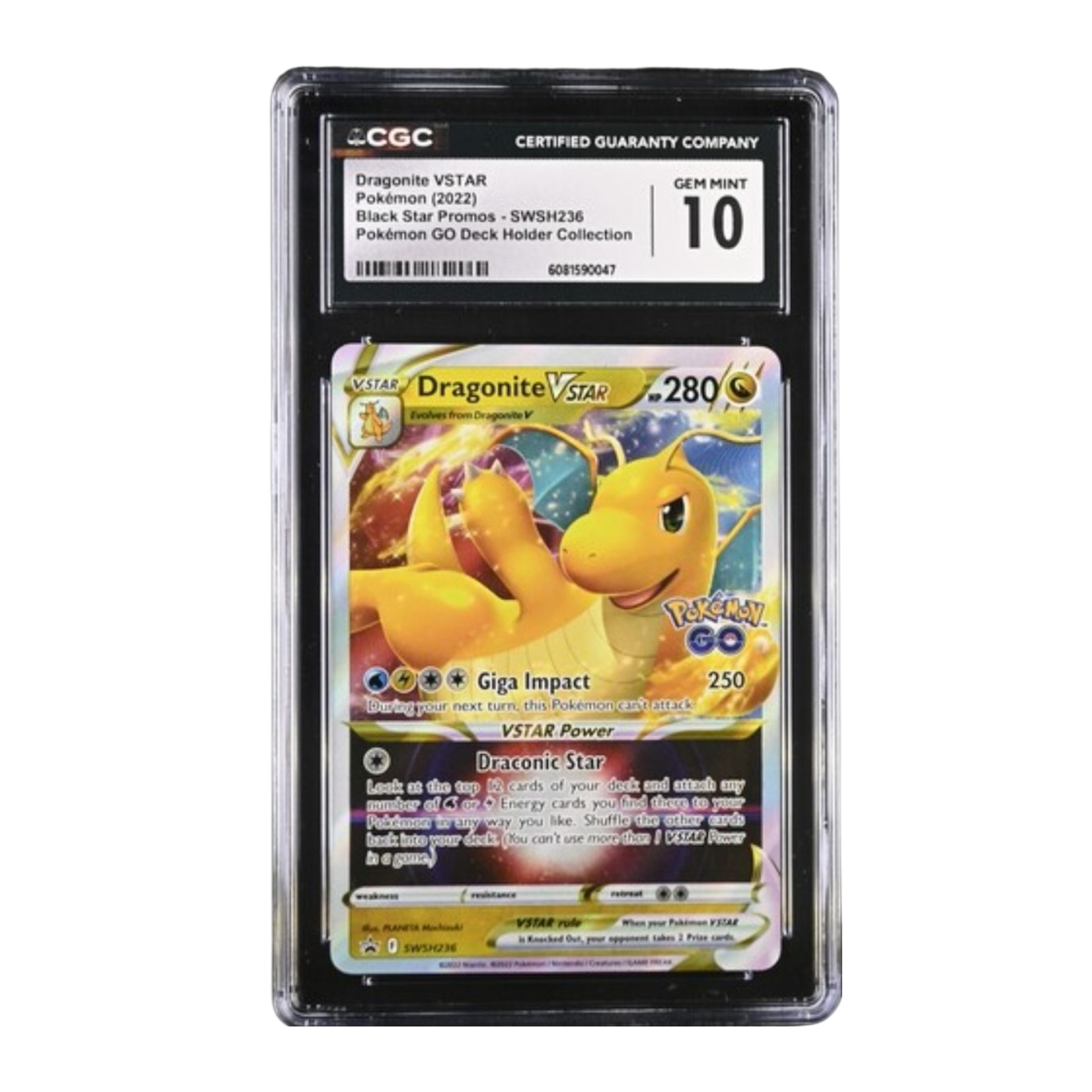 Dragonite Vstar SWSH 236 Black Star Promo CGC Gem Mint 10 Graded Pokemon Card from the Pokemon Go Deck holder Collection making this a very rare card. Dragonite Vstar only 30 graded higher